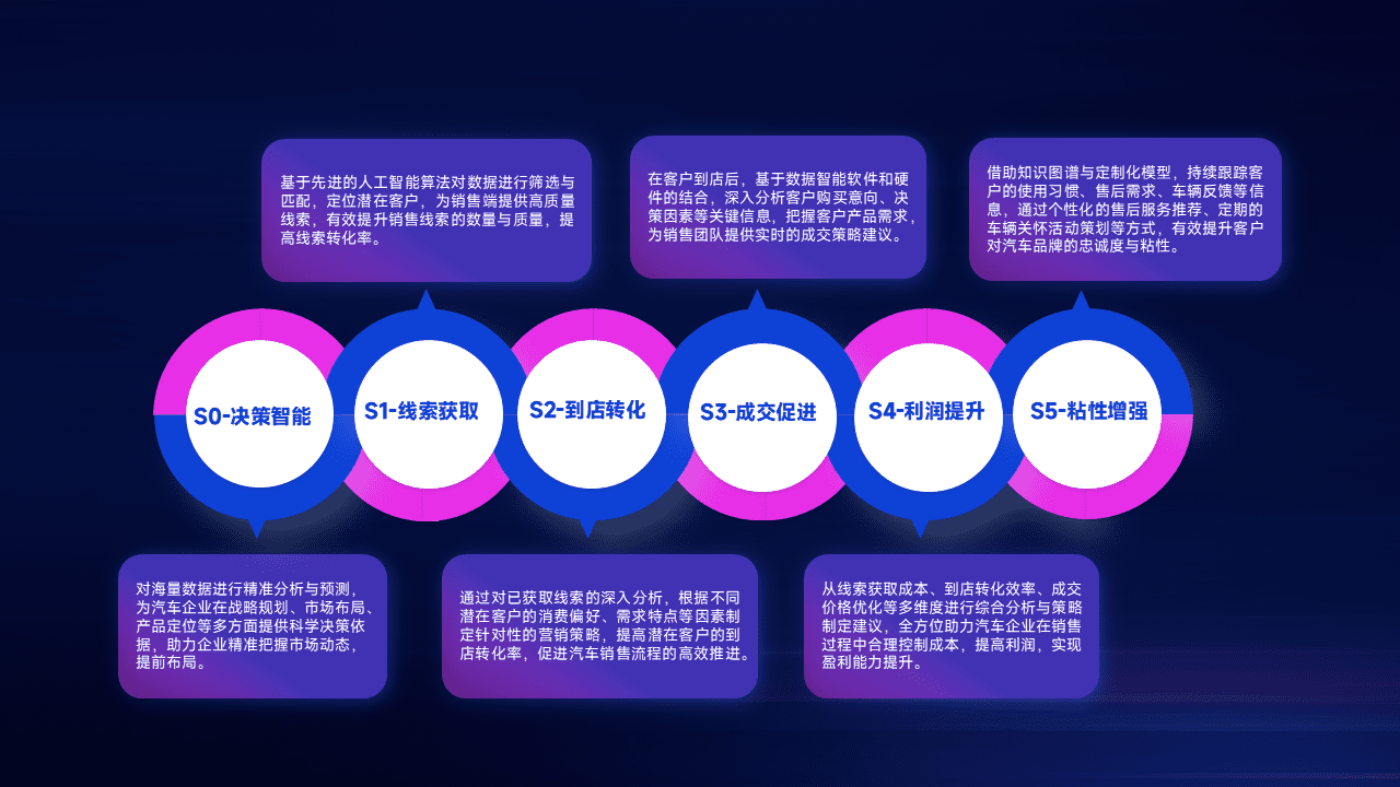通过拓宽潜在客户来源、、、优化线索分配并提高到店转化率,,以增强销售效率。。。。同时,,,,利用线索数据不断优化分析模型,,有效提升转化率,,,,扩大营销影响力。。。